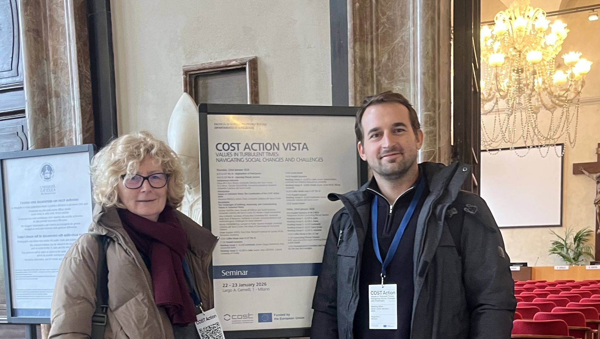HSD član dr. sc. Augustin Derado i dr. sc. Renata Franc sudjelovali su na prvom općem sastanku COST akcije VISTA „Values in Turbulent Times: Navigating Social Changes and Challenges“ (Vrijednosti u turbulentnim vremenima: Suočavanje s društvenim promjenama i izazovima – CA24150). Sastanak je održan na Università Cattolica del Sacro Cuore u Milanu 22. i 23. siječnja 2026. godine.